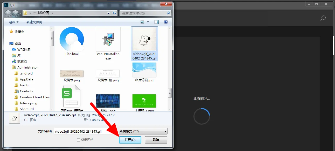 - 打开PS,导入GIF文件(快捷键Ctrl+O)。