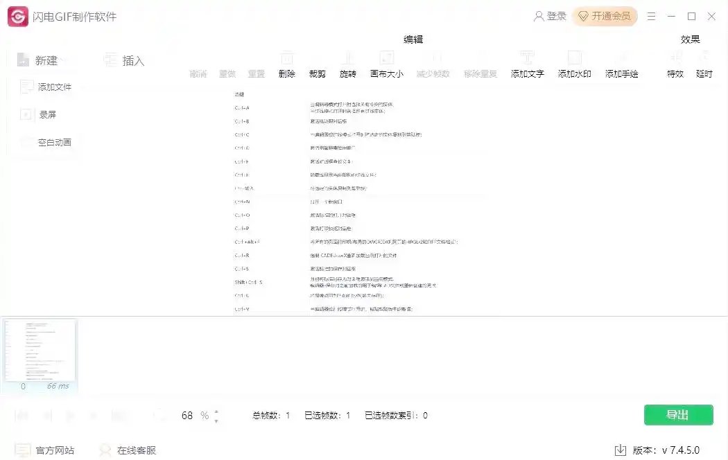 - 录制屏幕或导入视频,调整参数后导出为GIF。