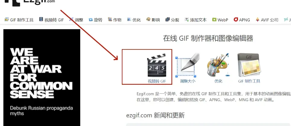- 访问 ezgif官网 ,选择【视频转GIF】。