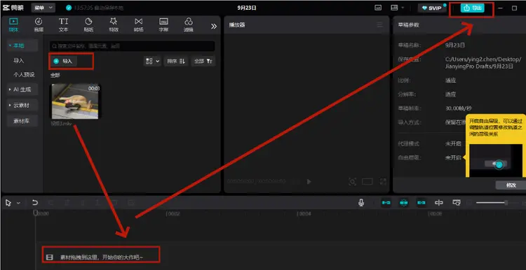 - 打开剪映,导入视频并拖入时间轴。