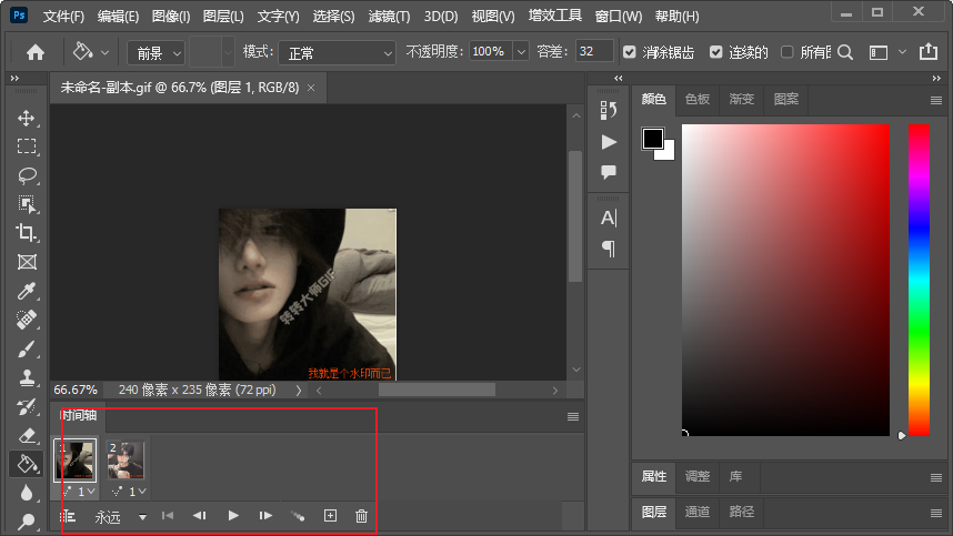 2、创建时间轴:点击窗口菜单中的“时间轴”,选择“创建帧动画”。将每张图片拖拽到时间轴中,调整每帧的显示时长(默认0.5秒)。
