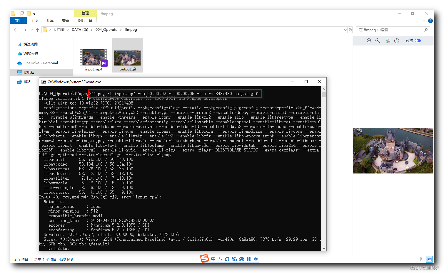 2、执行转换命令:打开终端,输入以下命令:ffmpeg -i input.mp4 -vf"fps=10,scale=800:-1"-loop 0 output.gif