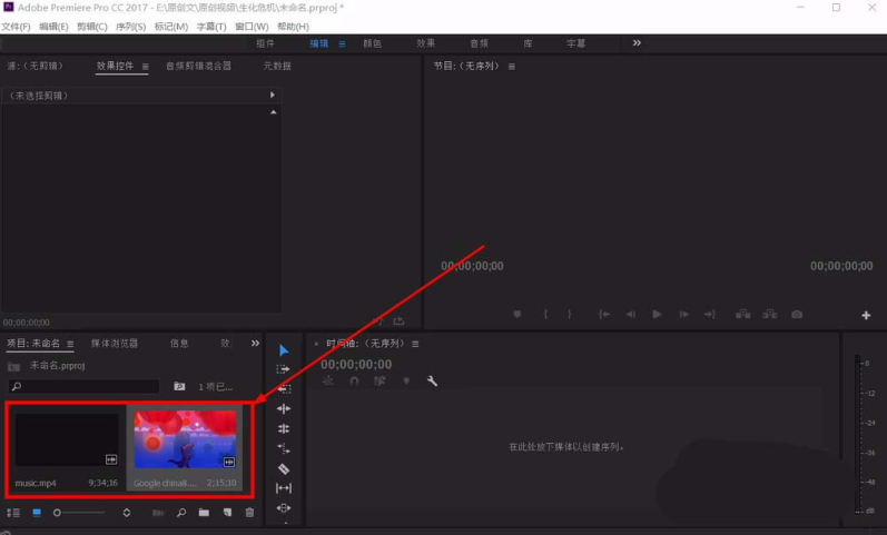 2、设置序列:创建一个新的序列,将视频素材拖入到序列中。