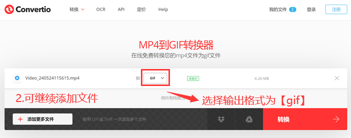 2、上传文件:打开在线工具网站(如Convertio),点击“选择文件”按钮,上传视频。