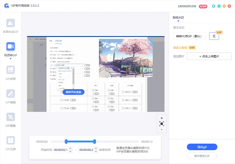 3、停止录制后裁剪片段,添加字幕或滤镜,导出GIF。