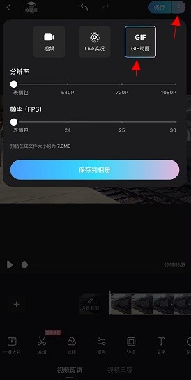 4、点击"导出GIF",选择画质,支持标清/超清/高清,选择尺,支持240P/360P/720P/原图尺寸