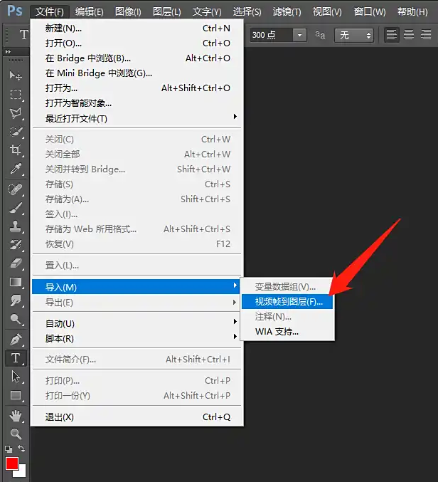 1、素材导入:选择「文件」→「导入」→「视频帧到图层」勾选「制作帧动画」选项