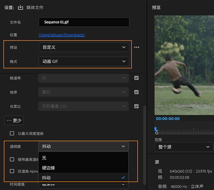 - 使用有损压缩:勾选「Lossy GIF」选项(牺牲少量画质换体积)