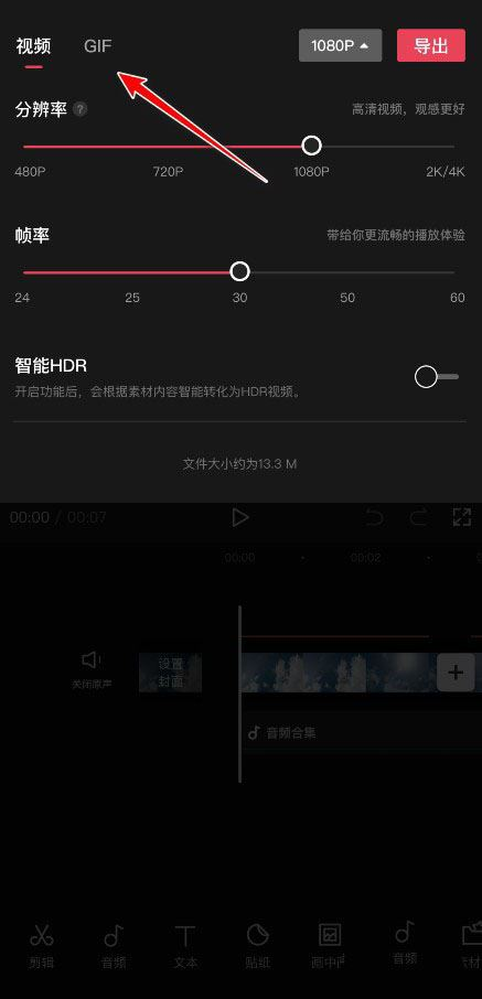 4、导出GIF:- 点击“导出”按钮,选择“GIF”格式,设置分辨率(建议480p以下)、帧率(20-30fps)和质量参数。