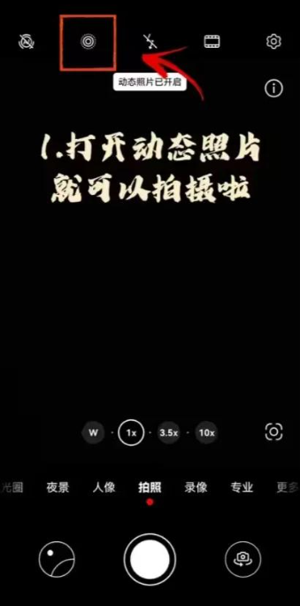 - 打开相机,点击“动态图片”按钮(灰色图标变为黄色)。
