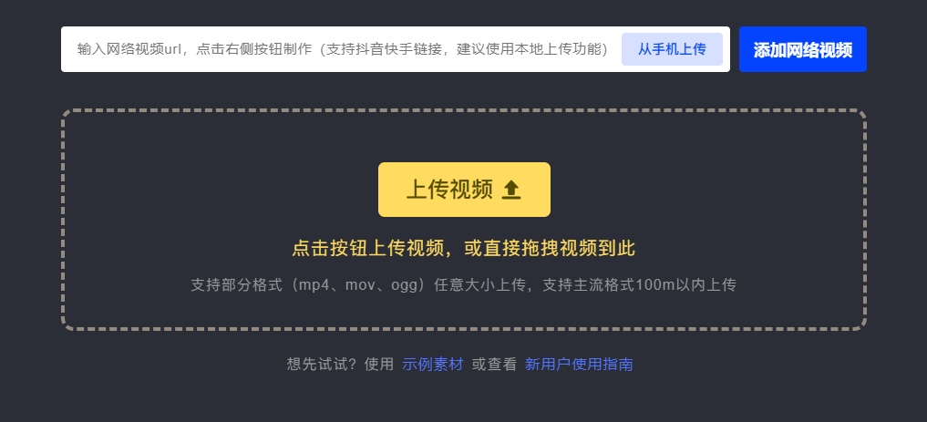2、上传素材:上传视频后拖拽进度条截取所需片段。