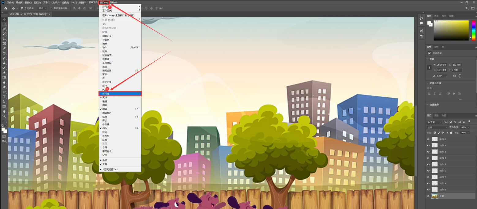 1、导入文件:打开PS,通过"文件>打开"导入GIF文件,在时间轴面板确认帧数