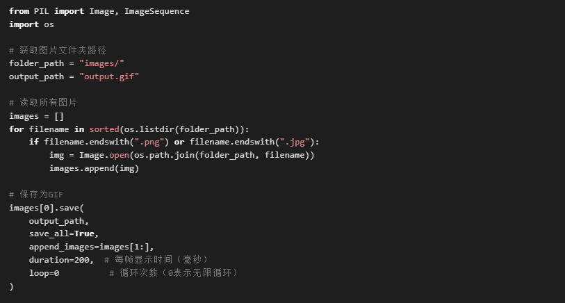 通过编程语言(如Python)结合图像处理库(如Pillow、OpenCV),可自动化生成GIF动图。适合开发者或数据工程师处理大规模图片或自定义动画逻辑。