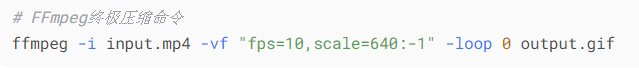 - ffmpeg-iinput.mp4-vf"fps=10,scale=640:-1"-loop0output.gif
