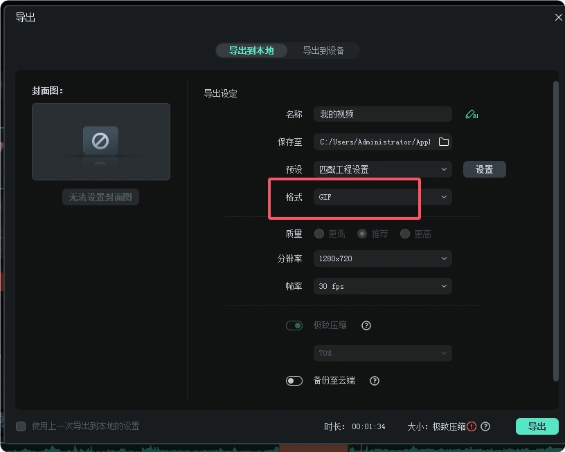 - 若改后缀失败,使用GIF工具箱导入MP4转换