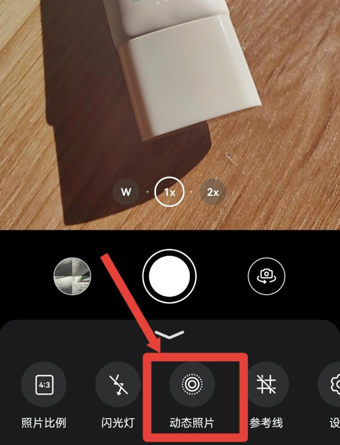 1、开启模式:打开相机 → 点击底部“动态照片”图标(圆形波浪纹标识)。