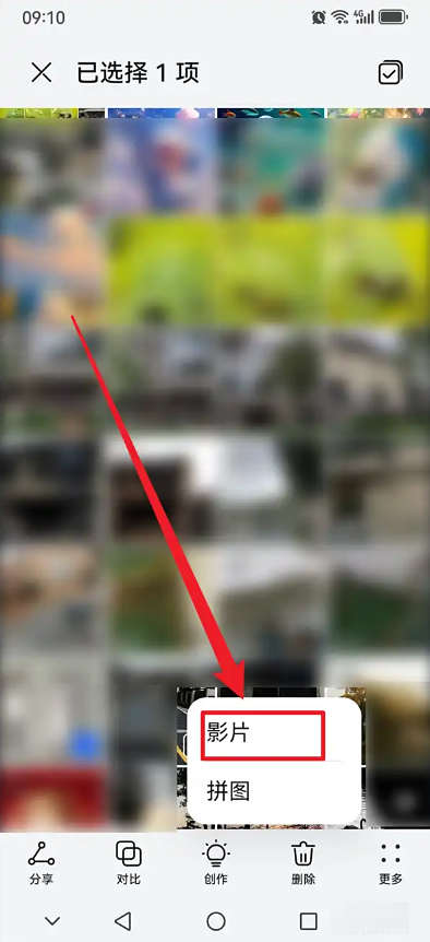 1、图库中选中3-5张照片(长按多选) → 点击底部“创作” → 选择“影片”;