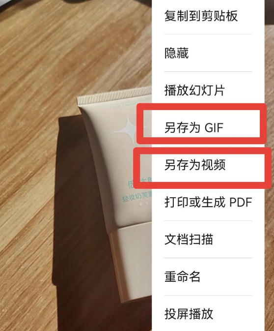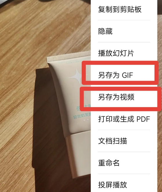 点击右上角“⋮” → 选择“另存为GIF”或“另存为视频”。