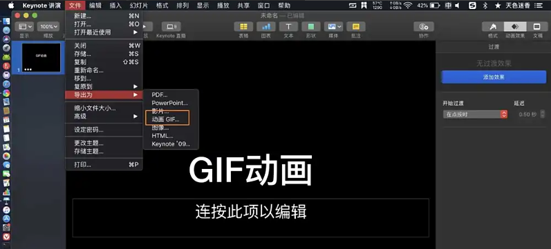 通过Keynote演示文稿制作动画GIF,适合制作PPT中的动态效果或教学材料。