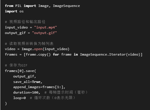 通过编程语言(如Python)批量处理视频片段并生成GIF,适合开发者或需要自动化处理的场景。