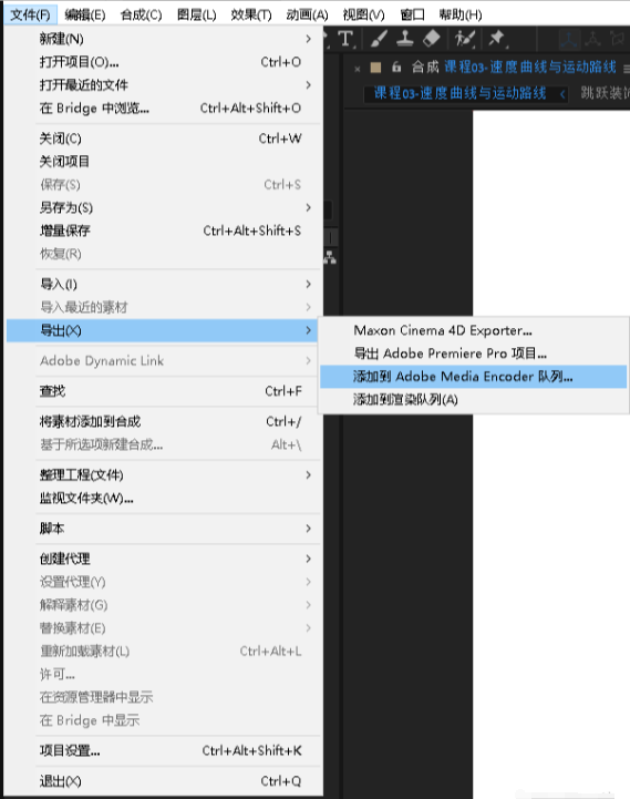 11、在对话框中选择"Adobe Media Encoder",设置格式为GIF并导出。