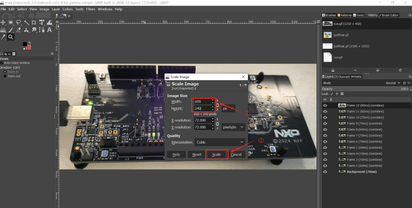 1、打开GIF文件,选择"图像>缩放图像"降低分辨率