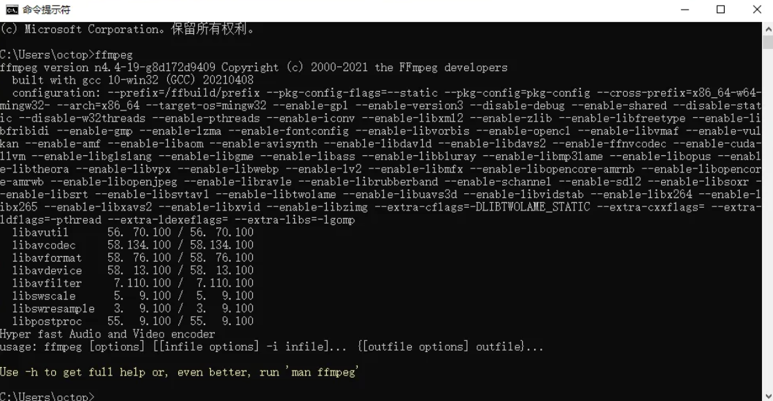 2、执行生成调色板命令:ffmpeg -i input.mp4 -vf"fps=15,scale=640:-1"palette.png