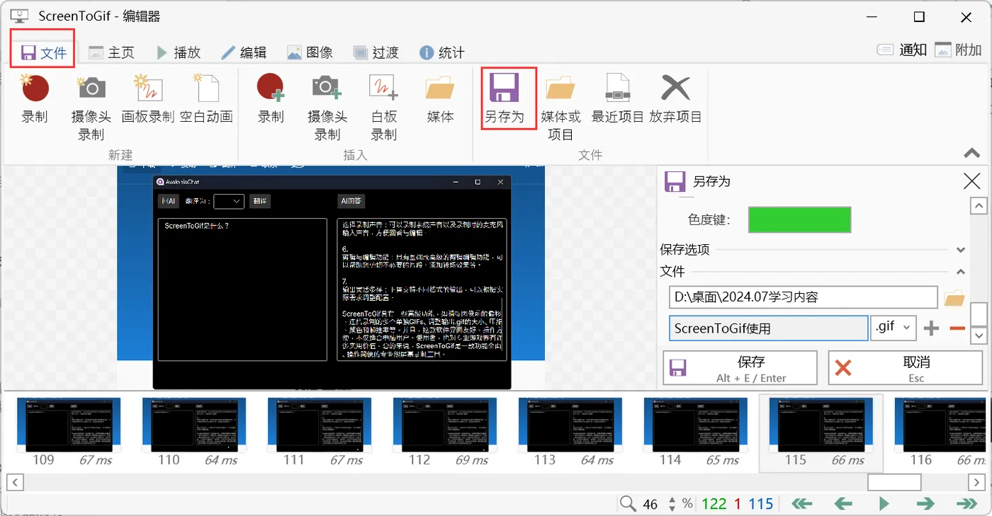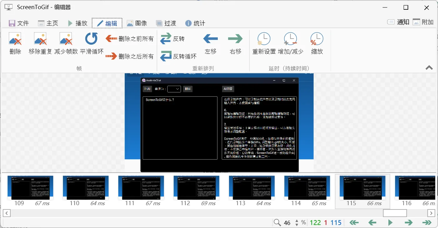 6、结束录制与编辑:操作完成后,按快捷键F8停止录制。ScreenToGif会自动打开编辑器。