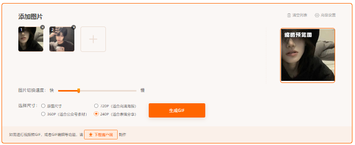 4、生成GIF:完成设置后,点击"生成"按钮,等待工具处理