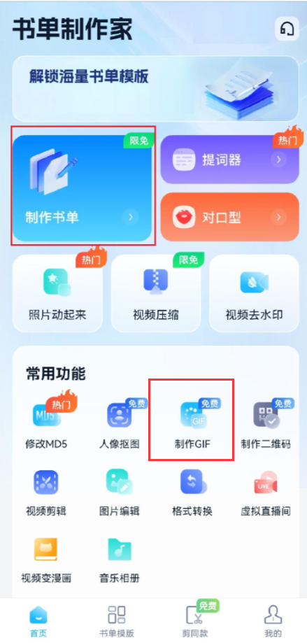 - 书单视频助手(手机端):支持视频转GIF及文字添加。